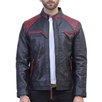 Buy Stylish Quilted Shoulder Black And Maroon Cafe Racer Jacket