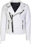 Revitalize your wardrobe with our Men's White Asymmetrical Cafe Racer Leather Jacket – more than just outerwear, it's a bold statement of contemporary style and rebellious charm. Crafted with meticulous precision, this asymmetrical jacket channels the essence of the classic cafe racer aesthetic. Imagine yourself hitting the streets, turning heads with the sleek white leather and edgy design.